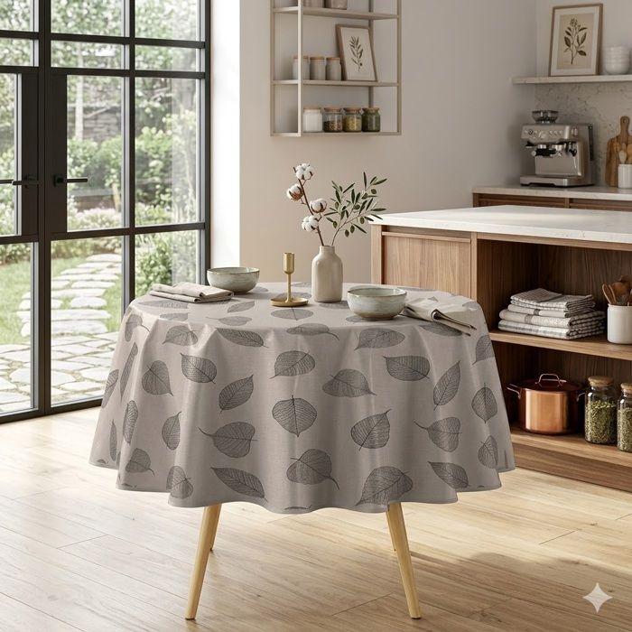 Nappe ronde - EDEN - Feuillys - Ø 160 cm - PVC imperméable - Motif feuilles lin