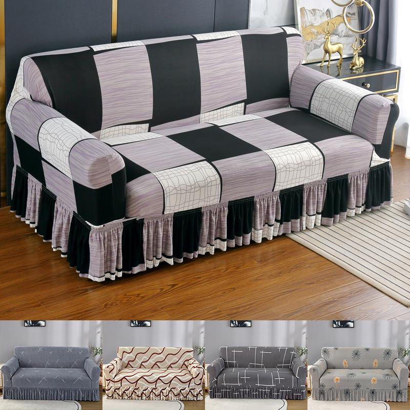Premium Printed Ruffled Skirt Sofa Covers for Living Room Stretch Couch Cover Sofa Slipcover Furniture Protector