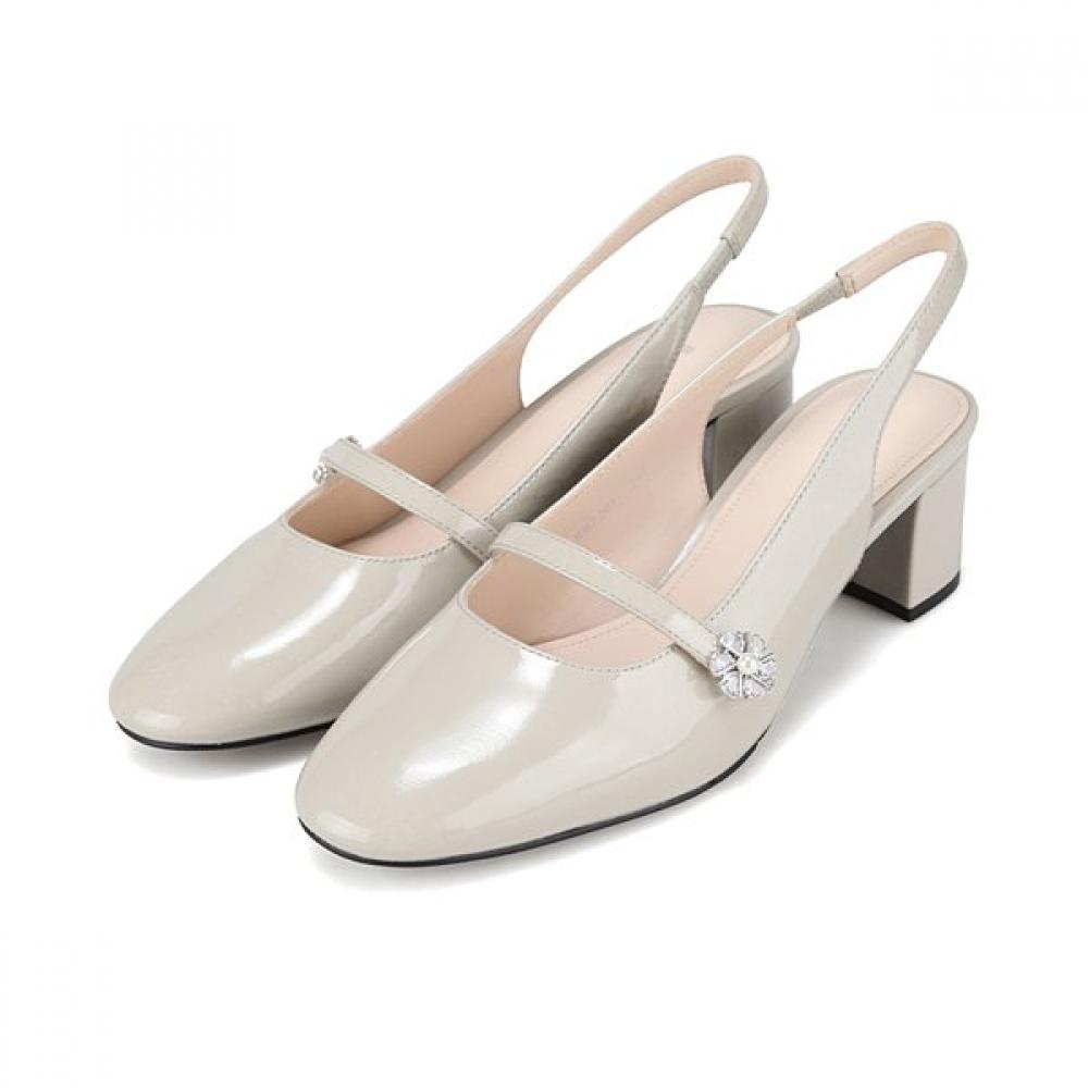 The cow leather patent gem point feminine slingback features a cute round toe and eye-catching gem decorations. With a simple design enhanced by the subtle luster of patent material and colorful accents, it emphasizes femininity. With an appropriate heel height, it offers a stable wearing comfort and practicality, making it a daily shoe that can be elegantly matched with various outfits.