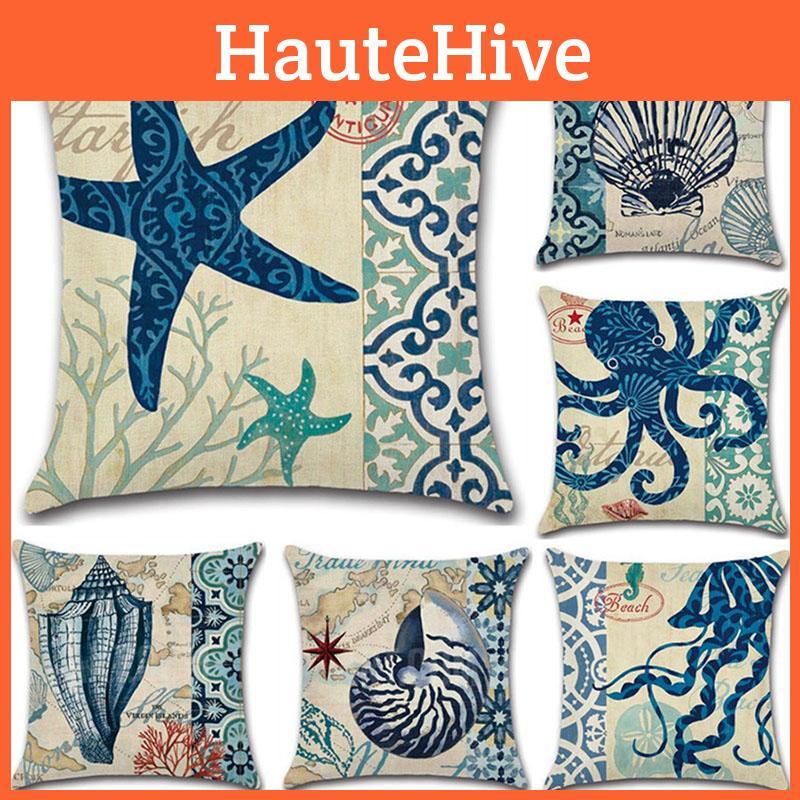 Decorative Fashion Creative Marine Organism Flax Cushion Cover Throw Pillow For Coastal Living