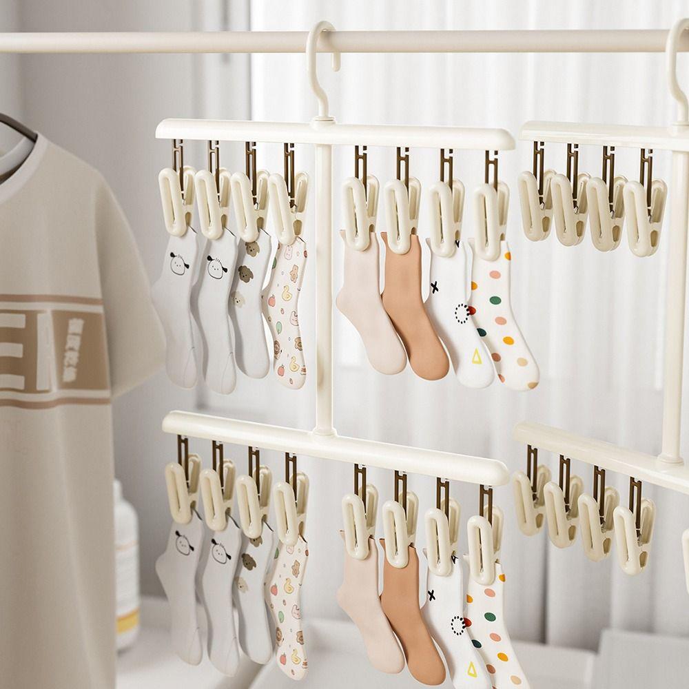 Multi-functional Sock Drying Rack Foldable Rotatable Clothes Hanger with Clips Windproof Space Saving Socks Hanger Clip