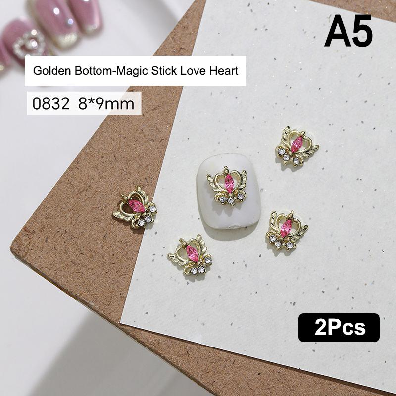 2Pcs 3D Loving Heart Shaped Nail Art Rhinestone Gems Charms Luxury Diamond Alloy Glitter Hearts Jewelry Nail Supplies Accessory