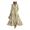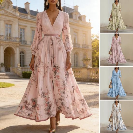 This elegant women's dress is perfect for parties, beach weddings, garden events, and holiday dinners, combining style and comfort effortlessly. Featuring a bold floral pattern with a deep V-neck, long sleeves, and a wrap top that cinches at the waist, it offers a flattering silhouette.