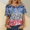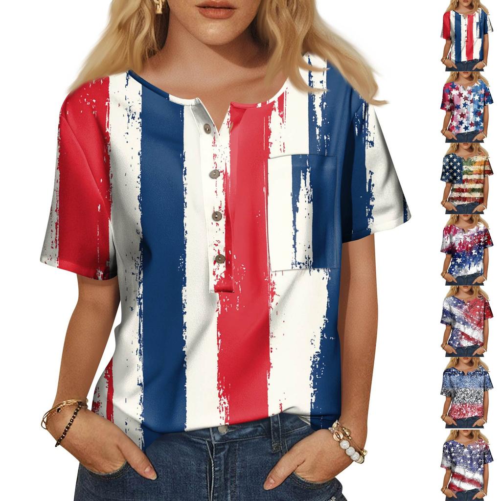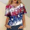 Women's Fashion Casual Short Sleeve Print Round Neck Pullover Top Blouse