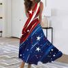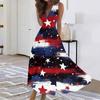 Women's Fashion Casual Loose V Neck Sleeveless Independence Day Printed Long Dresses