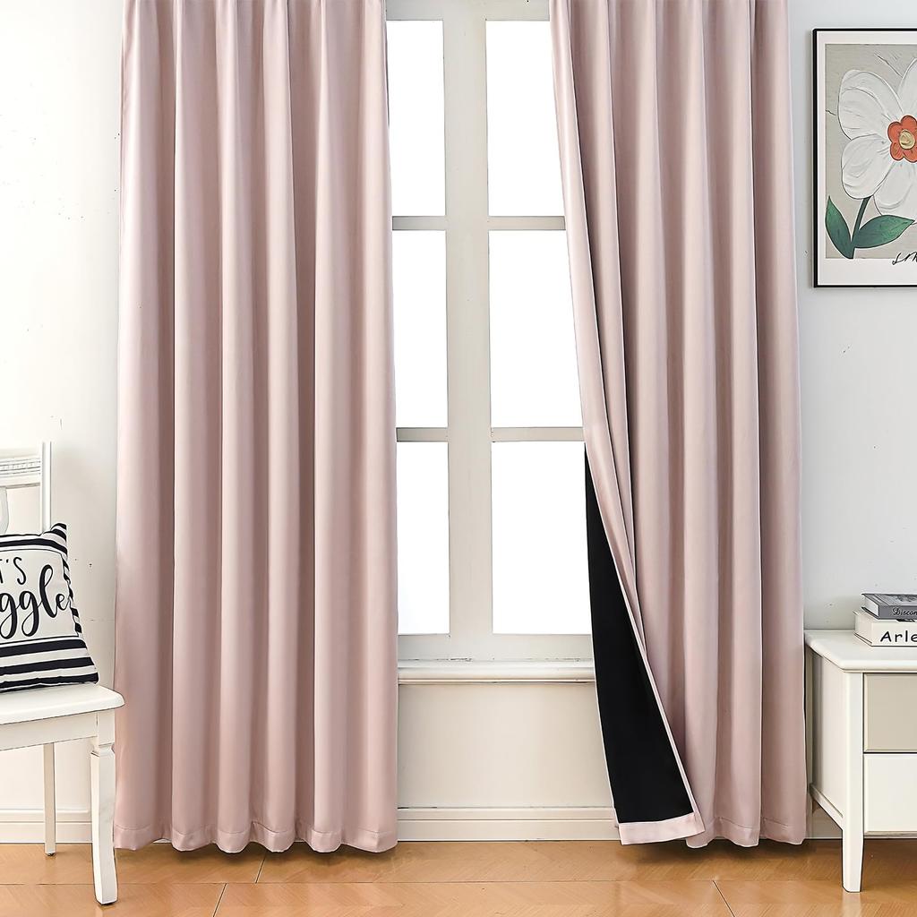 YeYeZhen Blackout Curtains, 1st Grade Light Blocking, Set of 2, Black Lining, Heat Insulation, Cold Protection, Soundproofing, Energy Saving, Thick, P