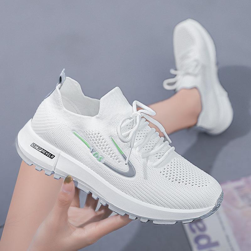 Breathable Non Slip White Women's Sports Shoes with Front Lace Up Lightweight Women's Casual Running Shoes