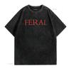 Mens FERAL Paint The Town Red Design Friends T Shirt Black L Vintage Washed Top For Everyday Wear Stretched Unisex Versatile