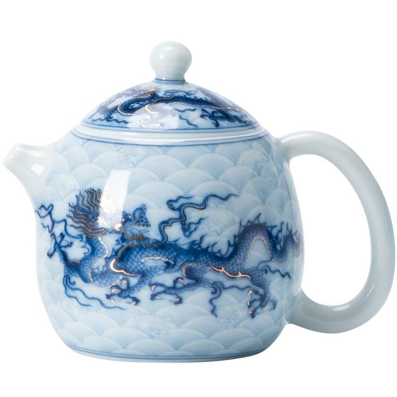 Metal Inlay Blue and White Dragon Teapot Single Ceramic Porcelain Chinese Kungfu Dragon Making Pot for Pu'er Tea