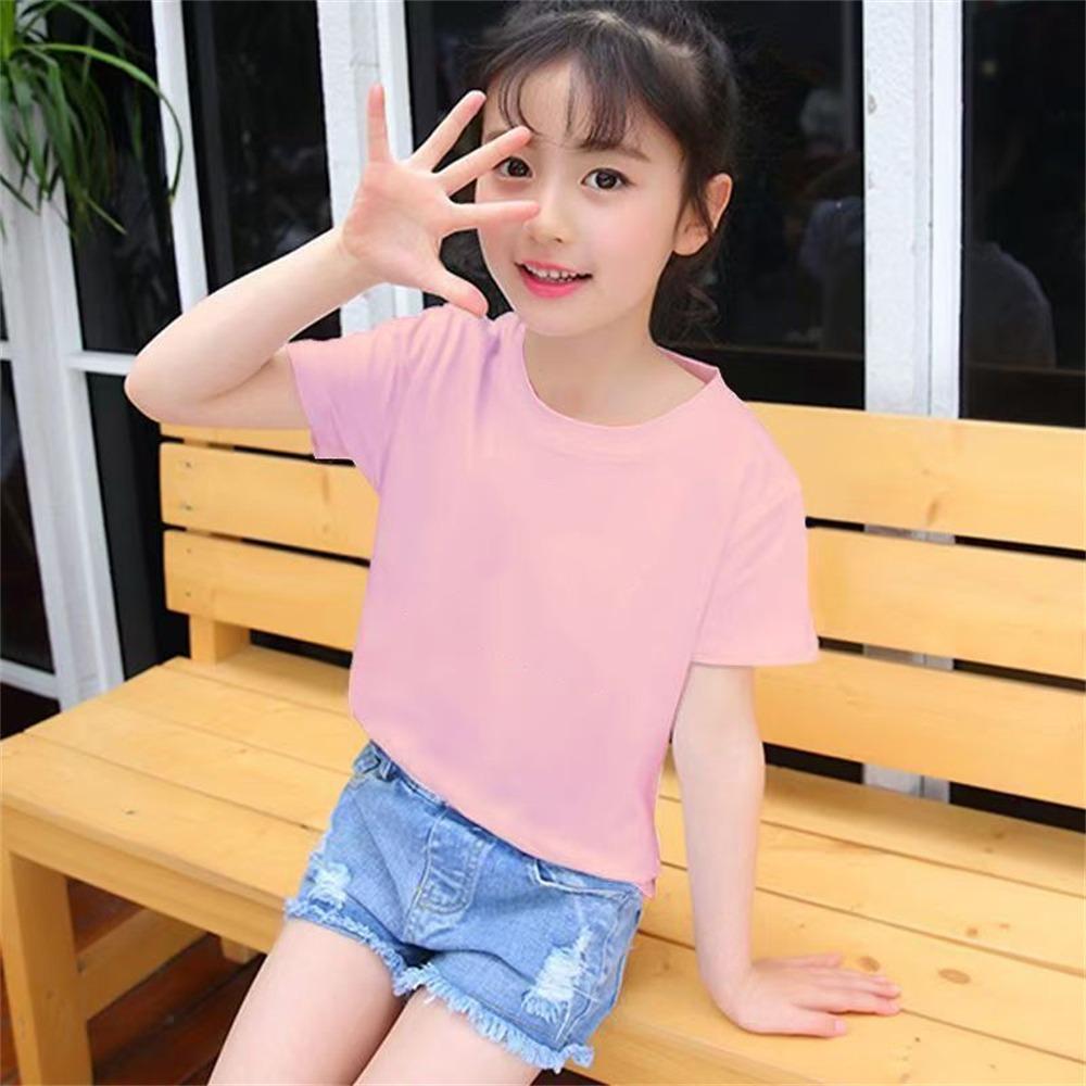 Children Solid Color Short Sleeve Suitable for Boys Girls Top 3-12 Age Toddle T-shirts Summer Casual White Pink Black Clothing