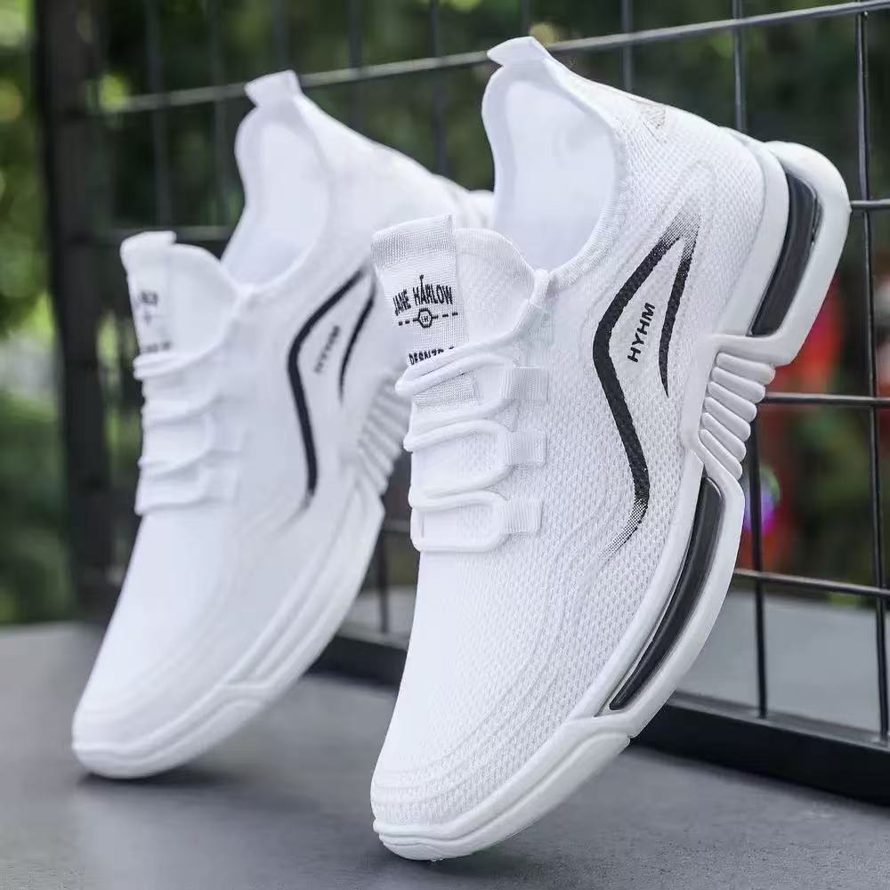 Men's Summer New Sports Trendy Shoes Non-slip Casual Running Shoes Flying Woven Breathable Comfortable White Shoes