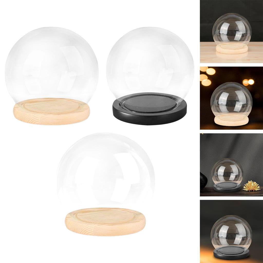 Display Dome with Wooden Base Tabletop Display Case Display Jar Case Dollhouse Decoration Transparent Dome Cloche Glass Dome