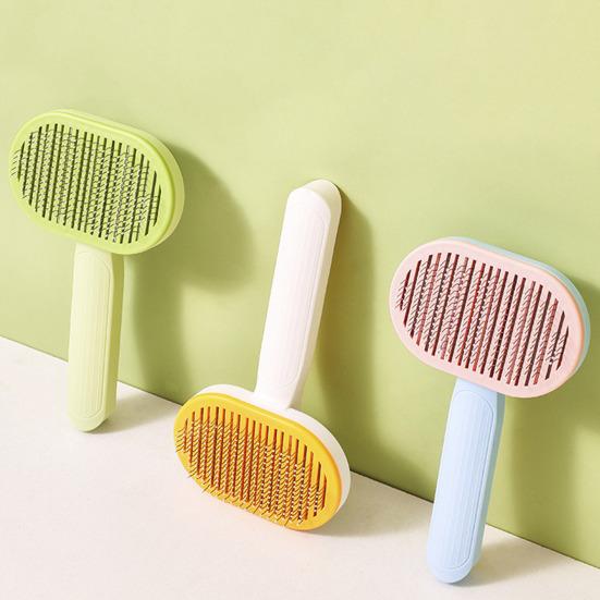 Designed to efficiently remove floating and dead hair, the one-click cleaning system eliminates manual hassle, combining grooming and cleaning in one tool. The scientifically curved comb teeth penetrate deep to capture loose hair without irritating your pet's skin, ensuring gentle and effective grooming. Available in a variety of stylish macaron colors—fresh green, milky white, light blue, soft pink—this comb not only meets practical needs but also complements any home décor with its sleek appearance.