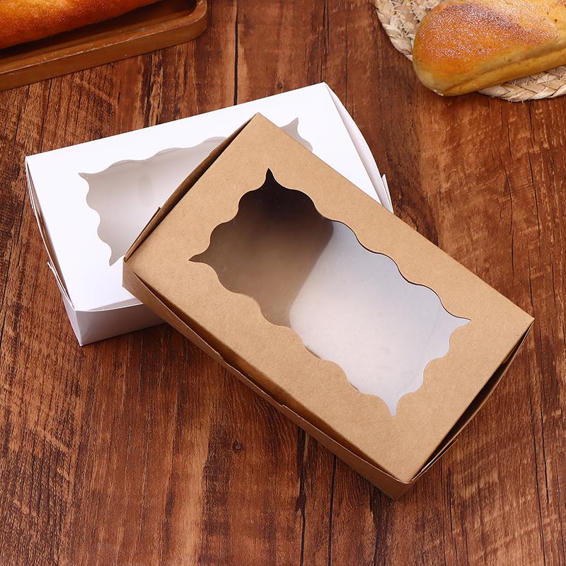 10Pcs Rectangular Cake Carriers Paper Gift Box With Clear Window For Cookies Bread Candy For Weddings Parties Valentine's Day
