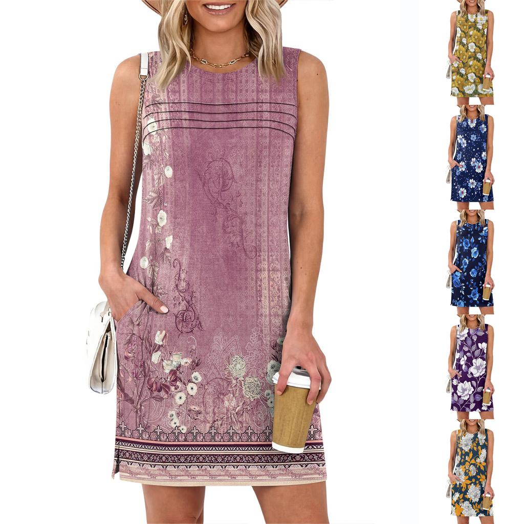 Women's Loose-Fit Casual Printed Split-Hem Sleeveless A-Line Dress