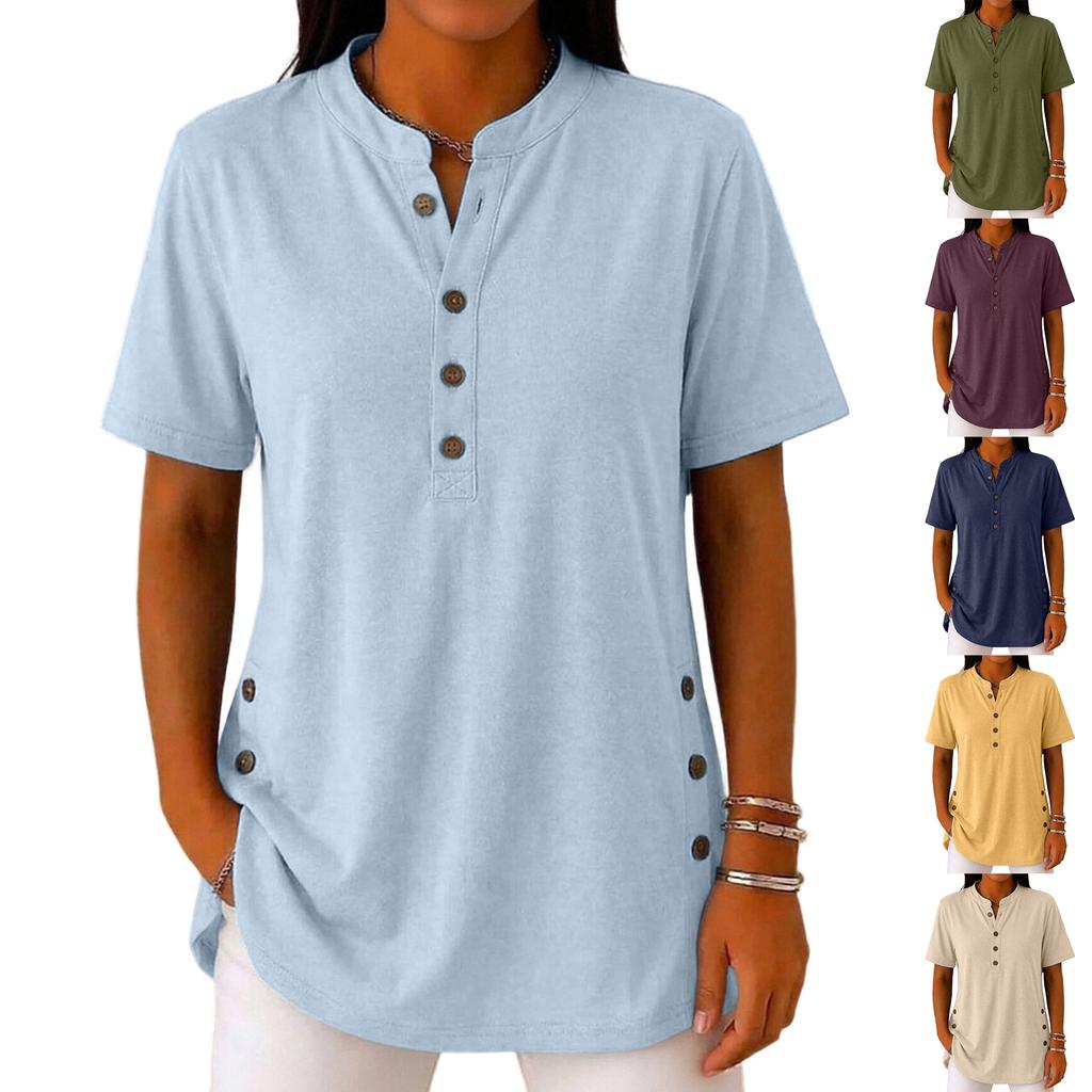 Women's Loose Casual V-Neck Button-Up Short-Sleeve T-Shirt