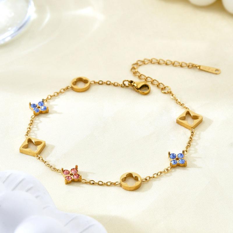 Four-leaf Clover Bracelet Elegant and Sophisticated Square Diamond Flower Titanium Steel Women's Bracelet