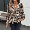 Women's Fashion Casual Spring Fall Leopard Print Long Sleeve V-Neck Blouses Shirts