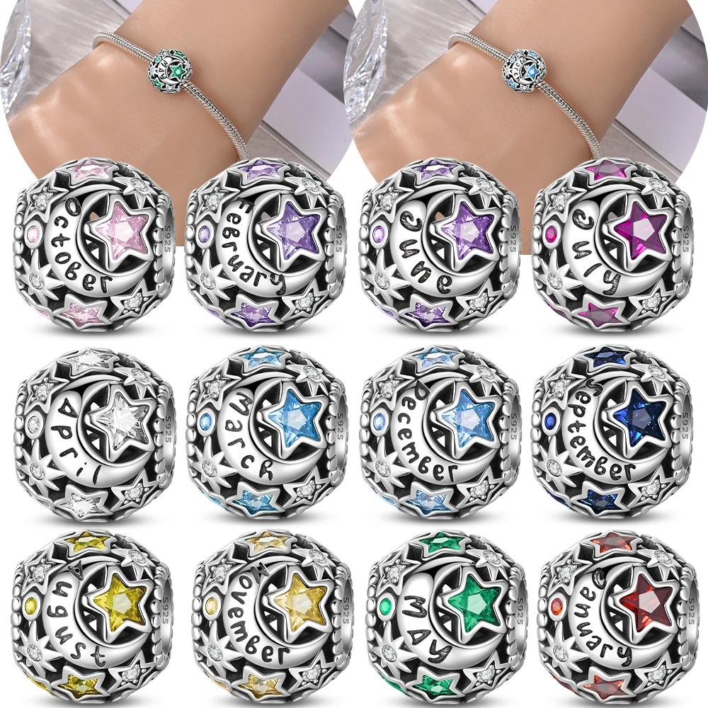 Copper Blue Stars Moon Zircon Round Twelvemonth Charm Bead Fits Bracelets Women Genuine Jewellery DoItYourself Beautiful Gifts Accessories