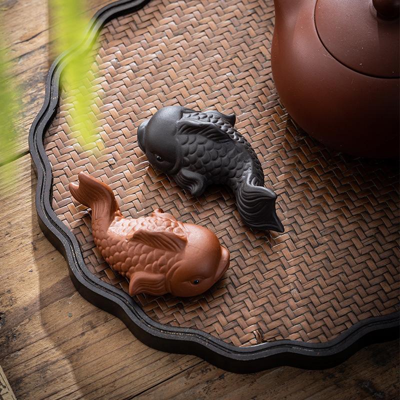Handmade Purple Clay Fish Tea Pet Nurturable Symbol of Abundance for Gongfu Tea Ceremony Home Desk Decor Collectible Gift