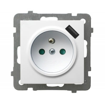 As White P/t Single Socket with Grounding 2P+Z with Shield + USB Charger Without Frame