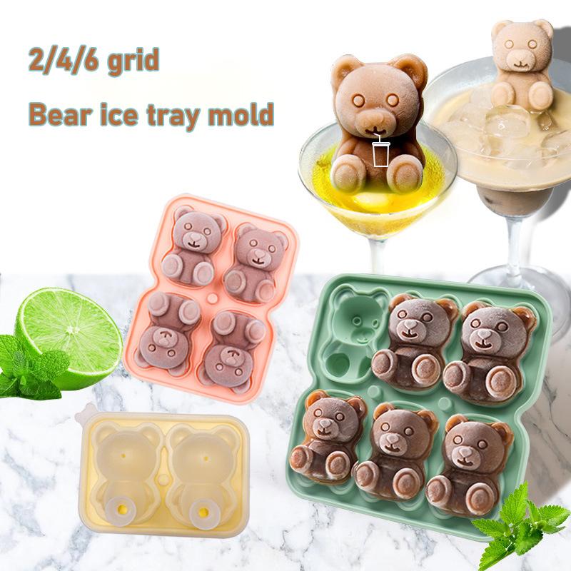 2/4/6 Grids Ice Cube Bear-shaped Silicone Molder 3d Kawaii Bear Summer Relieve The Heat Diy Drink Ice Coffee Ice Cube Trays Mold