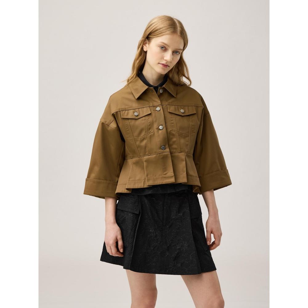 The GU by Uniqlo Peplum Blouson features a unique peplum design that offers a comfortable yet stylish silhouette. Classic button details and adjustable cuff buttons are attractive features. It can be paired with windbreakers to complete your style.