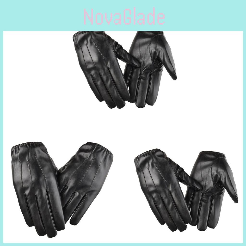 Pu Leather Mens Touchscreen Warm Gloves For Winter Driving Commuting