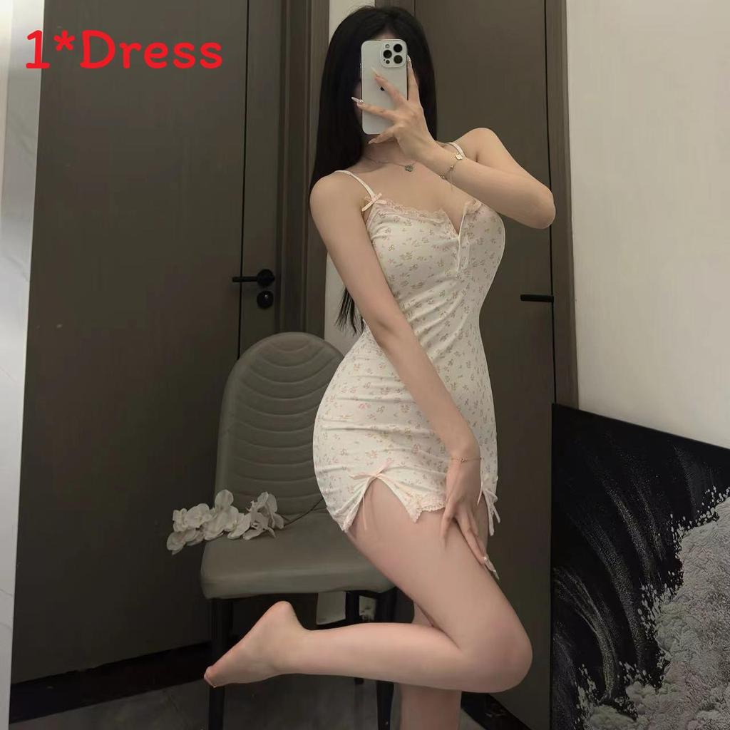 Sexy Floral Lingerie Dress With Ice Silk Material For Home And Sleep Comfort