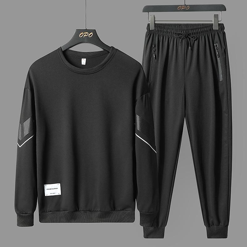 Sports Set Men's Round Neck Casual Two Piece Slimming Minimally Designed Sweatshirt Pants