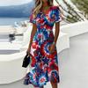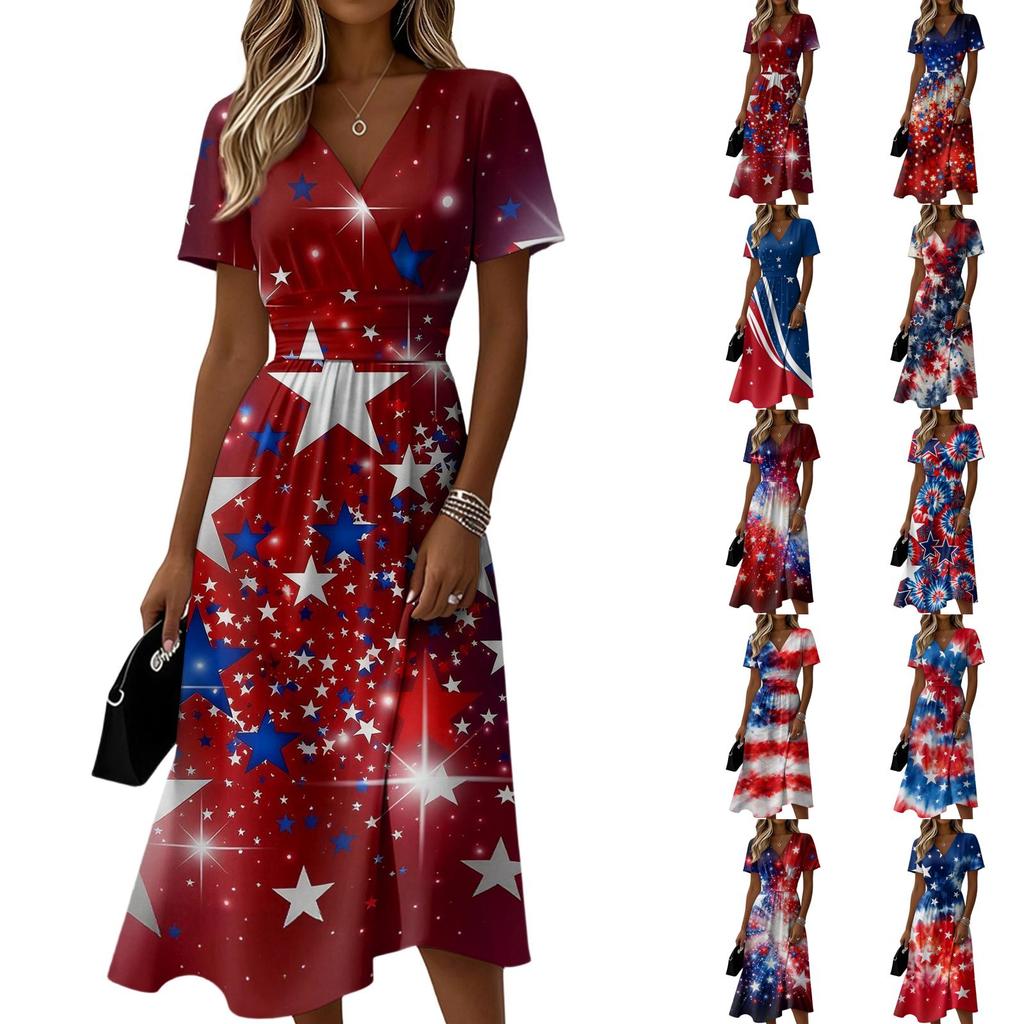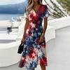 Women's Independence Day Print Casual Fashion Short Sleeve V-Neck Dress