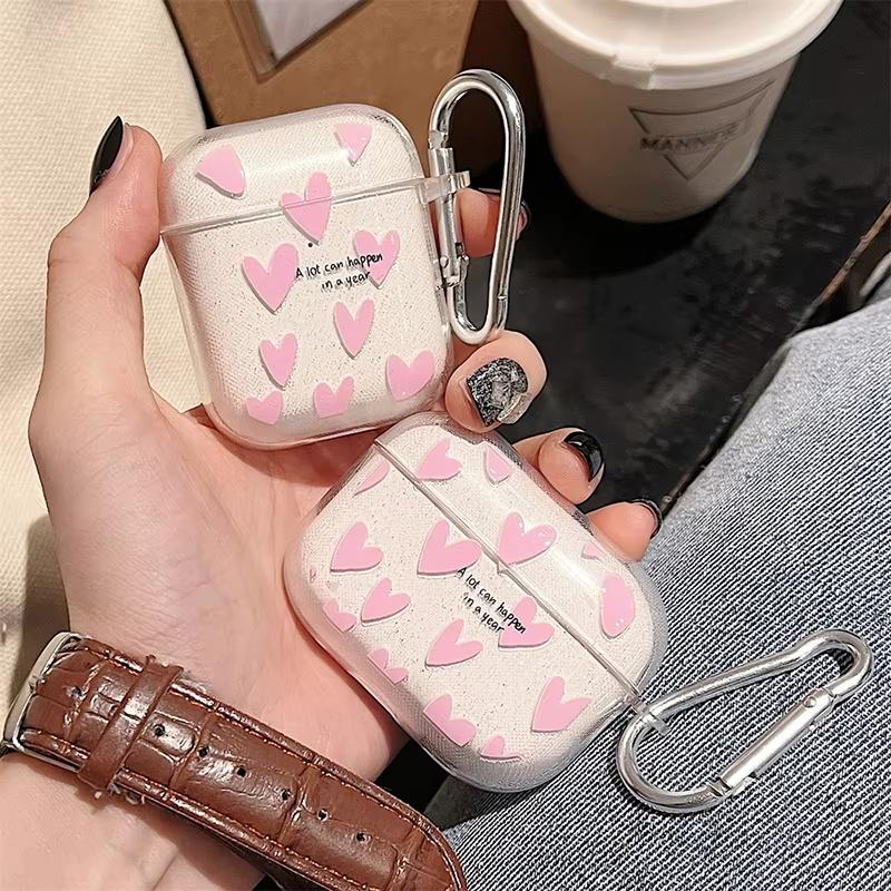 Pink Heart Flower Soft TPU Earphone Protective Case For Airpods Pro 2 1 For AirPods 1 2 3 Case Headset Accessories With Keychain