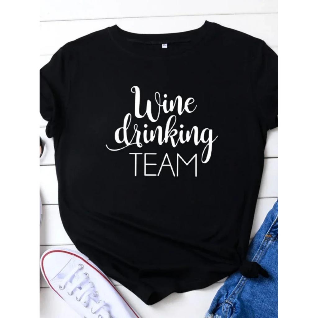 Wine Drinking TEAM Letter Print Women T Shirt Short Sleeve O Neck Loose Women Tshirt Ladies Tee Shirt Tops Camisetas Mujer