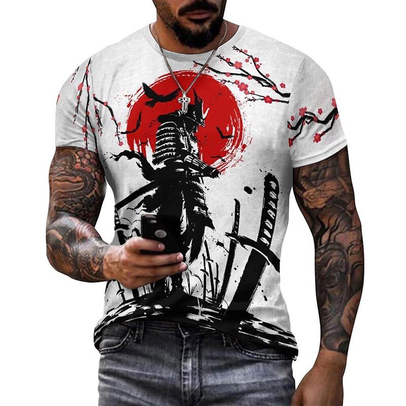 Japanese Samurai Ink Wash Graphic T Shirt for Men Clothing Harajuku Fashion 3D Printed T-shirt Women Clothes Vintage Streetwear