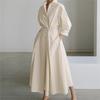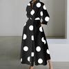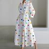 Women Casual Turn Down Collar Long Sleeve Loose Long Dress