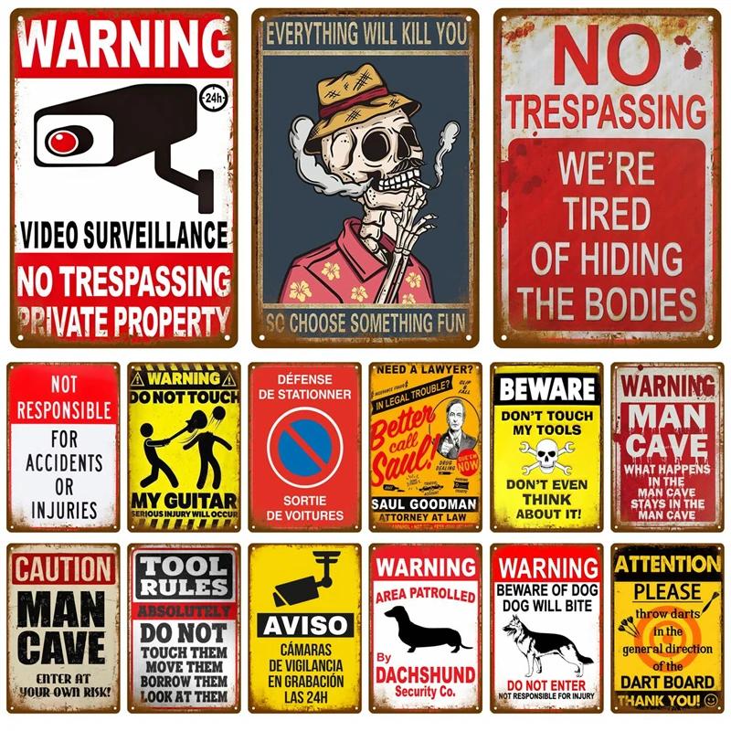 Retro Metal Warning Sign Vintage Tin Wall Decor for Home Room Bar Garage Cafe Club Man Cave Pub Mural Plate Poster Art