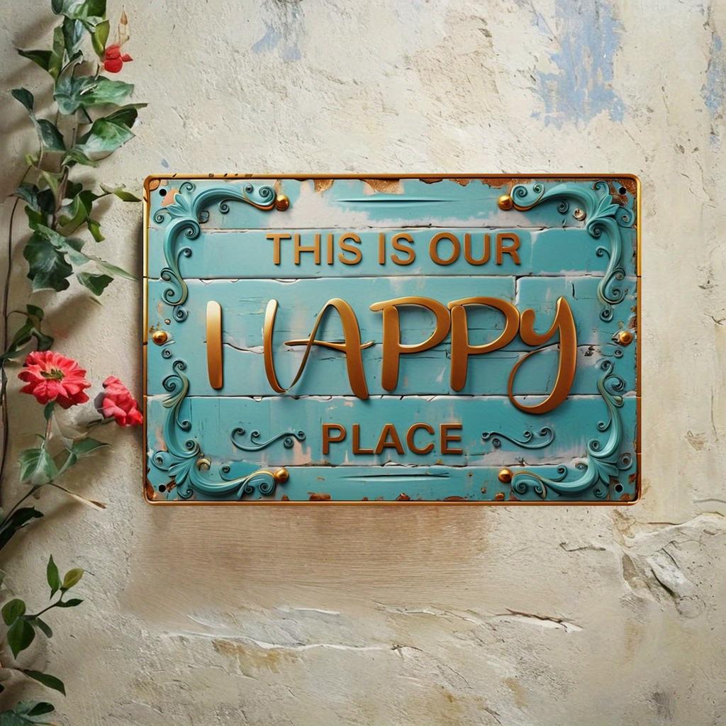 Vintage Metal Sign This Is Our Happy Place Wall Art for Home Kitchen Bar Restaurant Coffee Shop Man Cave IndoorOutdoor