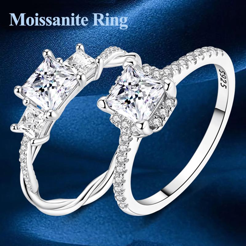 Genuine 0.8Ct Moissanite Ring Design Genuine Copper Shining Princess Square Ring For Women Finger Band Wedding Engagement Jewelry Creation