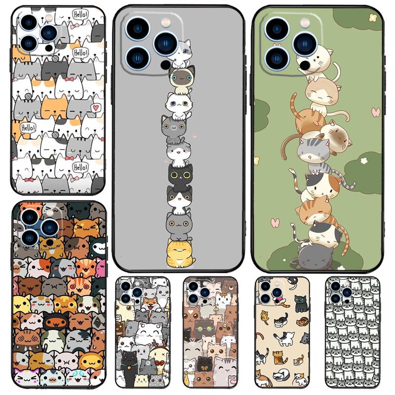 Funny Cute Cats Case For Apple iPhone 12 13 Mini 11 14 15 16 Pro Max Plus X XR XS Max Coque