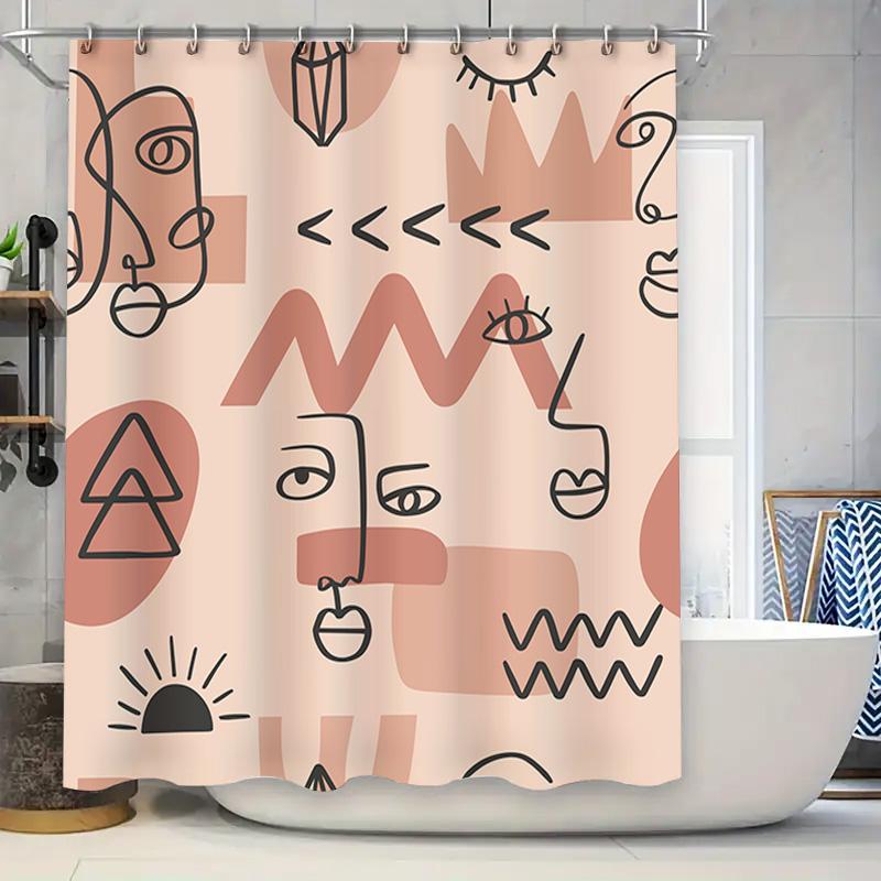Minimalist Bohemian Bathroom Decor Shower Curtain with Abstract Line Art Print In Pink Black Modern Wall Hanging Home Textiles F