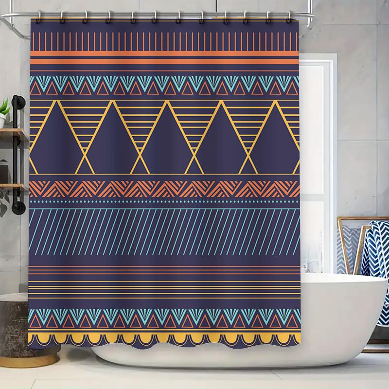 Modern Geometric Bath Curtain with Blue Tones Decorative Shower Curtain for Bathroom Decoration