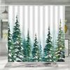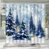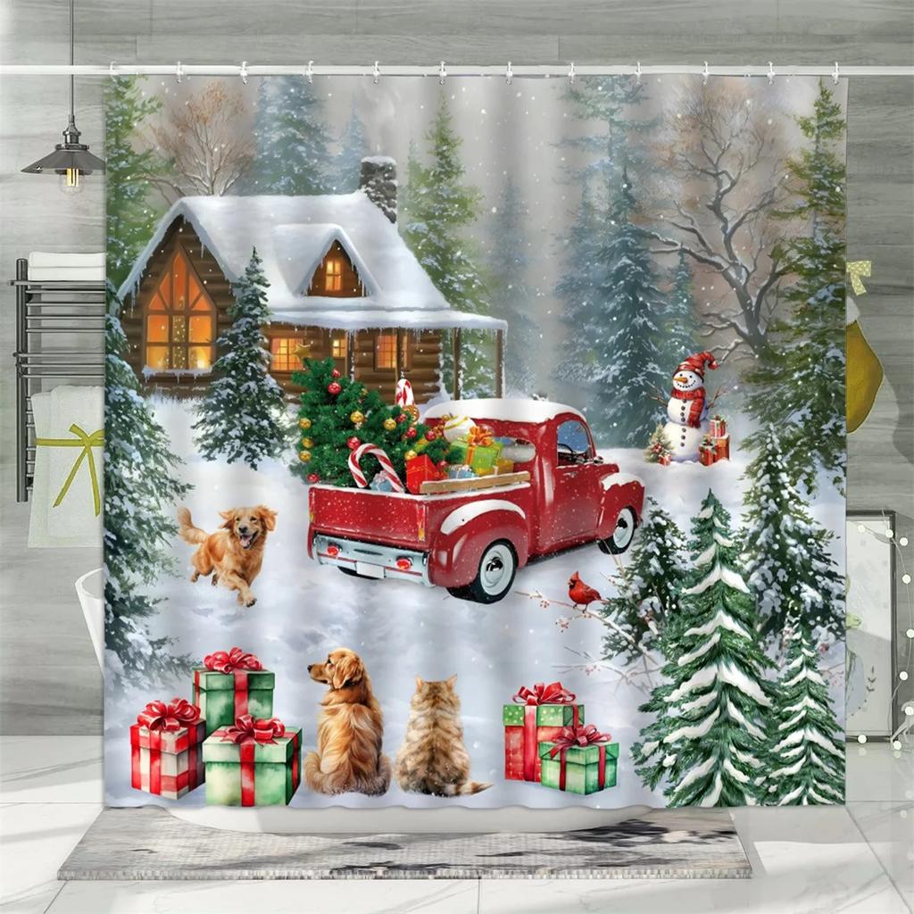 Christmas Shower Curtain, Winter Snowman Santa Claus Gnome Farm Farmhouse Cartoon Truck Christmas Tree Snowflake Bathroom Decor