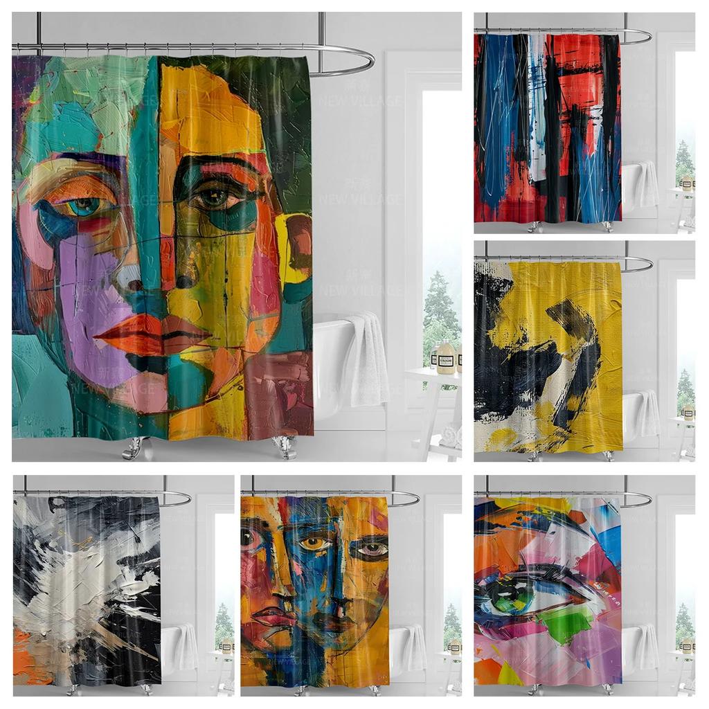 Abstract Graffiti Shower Curtain Machine Washable Fade-proof Nordic Family Bathroom Decorative Shower Curtain 180x200