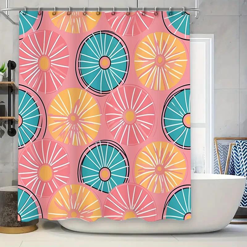 Colorful Circular Shower Curtain Modern Bath Decor for Bathroom Pink Blue Yellow Orange White Round Pattern Water Repellent Fabr