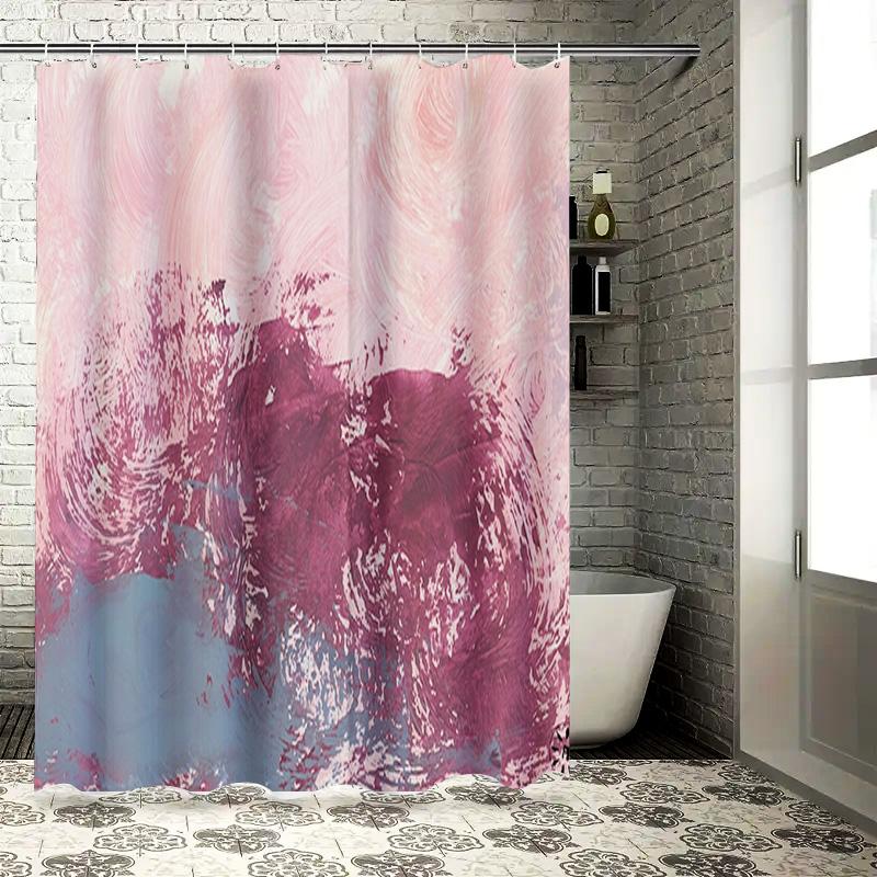 Stylish Bathtub Shower Curtain with Abstract Design In Pink Purple Perfect for Modern Bathrooms