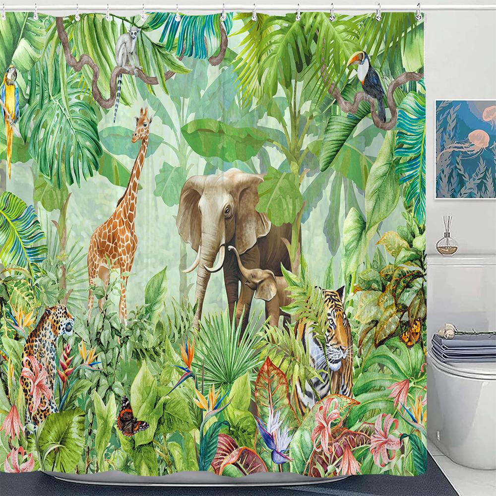 Tropical Plants and Animals Print Shower Curtain Waterproof Shower Curtain Bathroom Partition Curtain Bathroom Decor Accessories