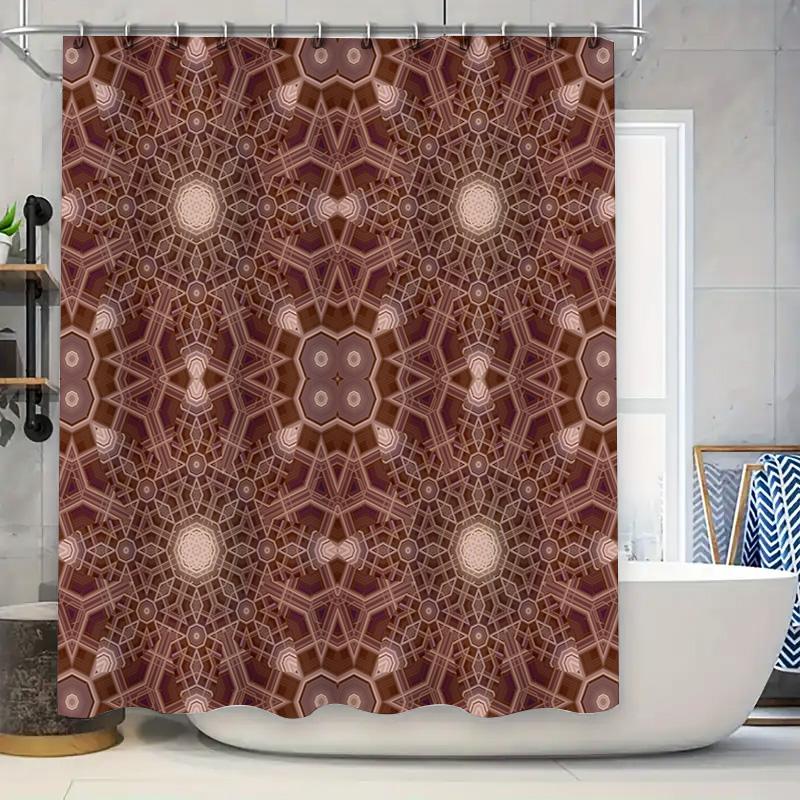 Kaleidoscope Shower Curtain Rustic Boho Style Bathroom Decor Waterproof Fabric Handmade Customizable Size 160x185cm Red Beige