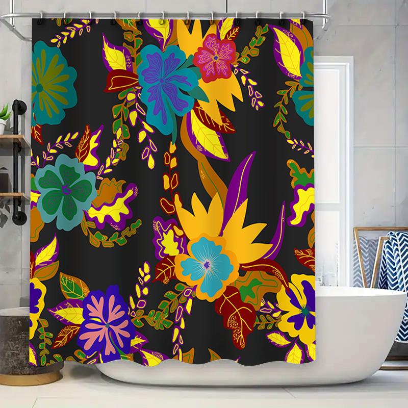 128 Character Title: Bathroom Shower Curtain with Vibrant Floral Pattern Modern Home Decor In Black Background