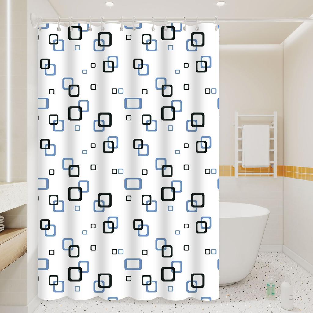1pc Small Square Artwork Geometric Shower Curtain, Waterproof, PEVA Material, Modern Minimalist Bathroom Decor