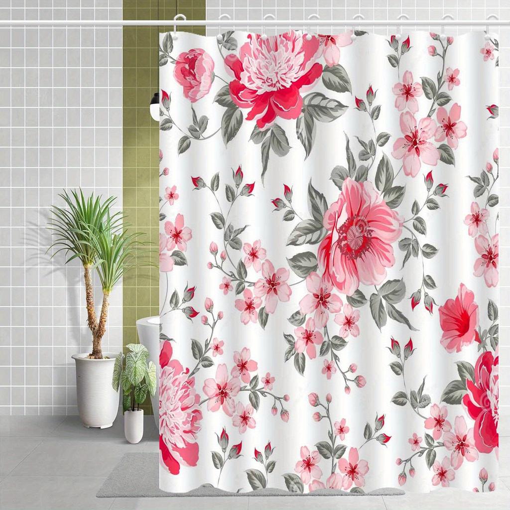 1pc Nordic Elegant Pink Floral Shower Curtain, High-end Elegant Bathroom Curtain, Bathroom Decoration Pattern